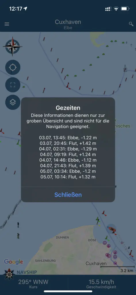 Beachtet bitte, dass wir die Daten für den Gezeitenkalender selbst von einer Drittquelle[1] beziehen und diese nicht für die Navigation verwendet werden dürfen. Sie dienen lediglich zur besseren Planung und Unterstützung.