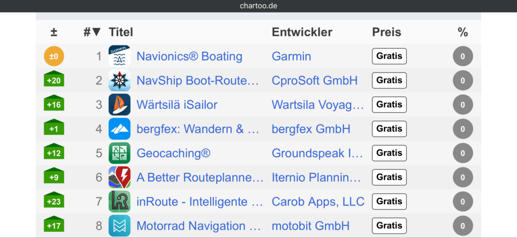 NavShip gradually became more and more well-known. A key player when it comes to route planning on the water. The risk of investing 100% in self-employment paid off in the very first year. In comparative tests (e.g., in the boating magazine), NavShip consistently ranked among the top performers. Our 2023 sailing feature, which improves the visualization of wind data and displays sailable areas, now opens the app to a wider user base. On April 13, 2024, we surpassed the milestone of one million users. Currently (as of March 22, 2026), we have approximately 1.3 million users.